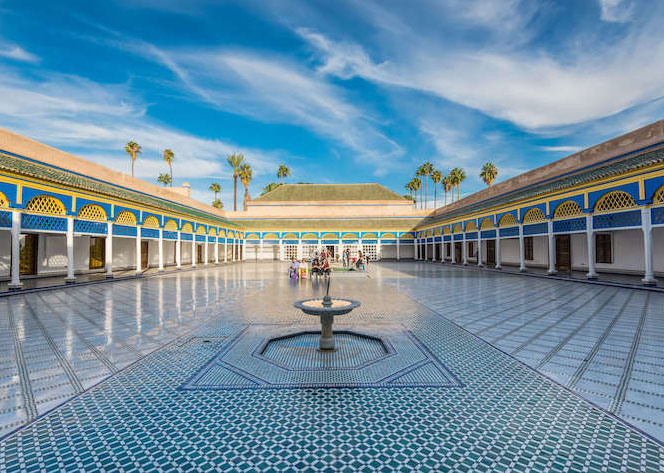 Prima colazione in albergo a buffet. Intera giornata in visita di Marrakech, sito UNESCO, città interamente circondata da poderose mura di color ocra. Inizieremo dal Palazzo Bahia con i meravigliosi cortili porticati con fontane e giardini e le sale decorate con stucchi, intagli lignei, pietre e marmi e dove si conservano le Tombe dei principi della dinastia Saadiana che regnarono a Marrakech per 125 anni. Ammireremo poi i giardini della Menara con il bel padiglione sul lago utilizzato quale luogo d'incontro tra il sultano e le sue favorite. Proseguiremo nel souk, nel giardino di Agdal, la Medersa Ben Yussef e il Museo Dir Si Said. Termineremo con i suggestivi giardini creati dal pittore francese Jacques Majorelle, unici nel loro genere. Pausa pranzo in ristorante lungo il percorso.