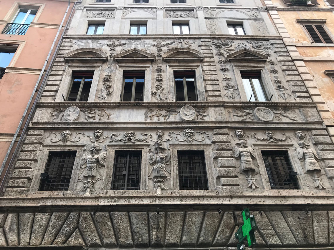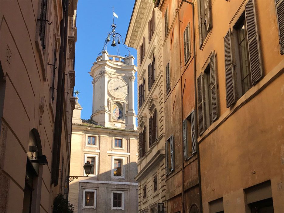 Passeggiata guidata in alcune delle più belle strade di Roma tra i caratteristici rioni Ponte e Parione, le strade degli antichi banchi finanziari, di depositi e di cambia valute: i Banchi Vecchi, Banchi Nuovi e il Banco di Santo Spirito. Durante questo avvincente percorso incontreremo l'anima della vecchia città, consolidatasi tra il Medioevo e il Seicento, e composta da palazzi e case, torri e chiese, cortili, targhe ed antiche edicole religiose. Ammireremo la Torre dell'Orologio, i palazzi Boncompagni Corcos, Benicelli, Alberini-Cicciaporci, Accetti, Gaddi Niccolini, del Vescovo di Cervia, Sforza Cesarini, la splendida quinta del Banco di Santo Spirito, il famoso palazzetto detto dei Pupazzi, il palazzo Capponi Stampa (che diede i natali a Pio XII), la chiesa di San Celso e Giuliano, la casa di Imperia, il palazzetto di Carlo Maderno, l'Arco dei Banchi con la targa della piena datata al lontano 1277.