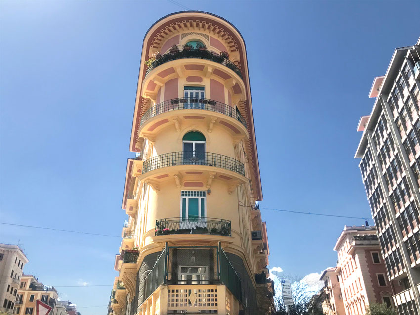 Il quartiere prende il nome dall'ing. Adolfo Sebastiani, proprietario nei primi del ‘900 dell'area che, con il nuovo piano edilizio di sviluppo periferico del 1909, prese il suo nome. Il quartiere fu così destinato alle classi agiate, con tipologia a villino e palazzina, e fu realizzato tra il 1917 e il 1922. Si definì così un'elegante zona tra via Rossini, via Paisiello, via Pinciana e piazza Verdi e che vide all'opera le più prestigiose firme di architetti dell'epoca. Lungo il percorso si incontreranno il Villino Sebastiani (oggi ambasciata di Grecia) e i villini realizzati per le figlie, villa Valeria del 1916 di Oriolo Ferzotti e il villino Astaldi del 1920 di Foschini e Spaccarelli, quest'ultimo costruito originariamente per la figlia Rosmunda. Poi passeremo a villa Serena e al villino Pincherle di Carlo Pincherle, architetto e pittore, che realizzò il villino per la propria famiglia in via Sgambati e dove vi crebbe il giovane Alberto Moravia. Nel quartiere operarono l'arch. G.B. Milani e Ballio Morpurgo; quest'ultimo costruì all'angolo tra via Vincenzo Bellini e via Giovanni Paisiello il bel Villino Alatri. Giungeremo alla facciata di Villa Clara in via Mercadante opera di Arnaldo Foschini. Dunque la Villa Taverna, poi il villino di Giulio Gra realizzato nel 1928 per la Società Anonima Cooperativa La Casa Familiare a via Mangili. Poi la Villa Parodi Delfino o dei Tre Orologi, magnifico edificio del 1926 di Tullio Passarelli e la villa del Principe Aram d'Abro progettata da Giovanni Sleiter. Termineremo in piazza Verdi dove incontreremo il monumentale palazzo della Zecca.