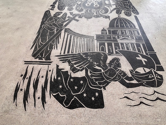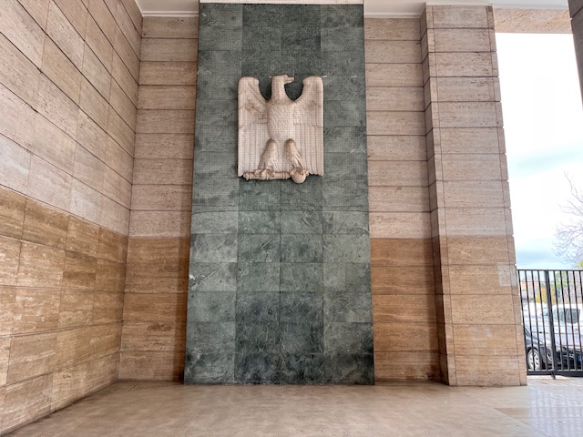 La Stazione di Roma Ostiense, grande polo ferroviario capitolino, fu realizzata in occasione della visita di Adolf Hitler a Roma, il 3 maggio 1938, ma il poco tempo a disposizione portò alla creazione, in meno di due mesi, di un’effimera ed incompleta architettura in tubi Innocenti rivestiti di pannelli di legno e stucco a imitare il travertino. All’arrivo del dittatore tedesco a Roma, in una scenografia notturna pensata anche per mascherare i difetti che grazie al buio non si evidenziavano, la stazione sembrava comunque magnifica. Il progetto di Roberto Narducci fu poi comunque completato il 28 ottobre 1940 ed entrò a far parte delle infrastrutture realizzate per l’Esposizione Universale del 1942. La Sala Presidenziale fu dunque pensata per accogliere Hitler, Vittorio Emanuele III e Benito Mussolini e consiste in due grandi ambienti monumentali rivestiti di Persichino della Maremma e con pavimenti in marmo Rosso Rubino, Nero Italia e Silvabella. A caratterizzare gli ambienti la maestosa statua in marmo di Carrara raffigurante la Dea Roma opera di Alfredo Angeloni in marmo di Carrara e il grande arazzo a succo d’erba opera dell'Atelier Eroli di via del Babuino. Notevoli anche i mosaici in tessere policrome bianche e nere, opera di Giulio Rosso e Maria Immacolata Zaffuto, a rappresentare un percorso storico, dalla leggendaria nascita della città di Roma fino alla città dei papi e all'esaltazione del Genio Italico. Vi è conservato anche un colossale tavolo usato in occasione dell’incontro. Una visita particolare resa possibile alla disponibilità di RFI che ci aprirà questi ambienti normalmente chiusi. A completare la giornata seguirà una breve visita alla Stazione Ferroviaria Roma-Ostia,. piccolo gioiello in stile Deco di Marcello Piacentini realizzata tra il 1921 e il 1923.